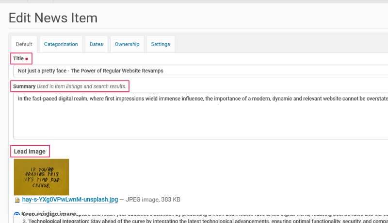 warning Warning: You have accessed the Plone backend through its Classic UI frontend.